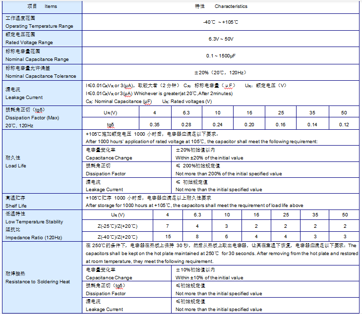 n 標稱電容量、額定電壓、額定紋波電流與外形尺寸對應表
